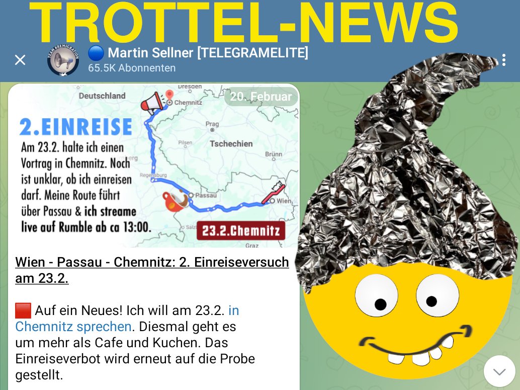 Der Sellner Bua will die momentane Aufregung über ihn nutzen und ladet für morgen um 16:30 zu einer Pressekonferenz in Wien ein für "alle Pressevertreter, die nicht nur über mich sondern auch mit mir sprechen wollen" (siehe https://t.me/martinsellnerIB/19630).