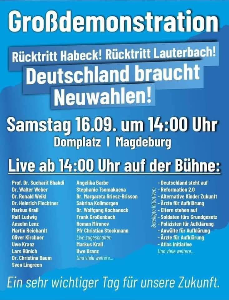 Das Who is who der noch nicht in das Ausland geflüchteten Querdeppen lädt mal wieder nach Magdeburg ein.