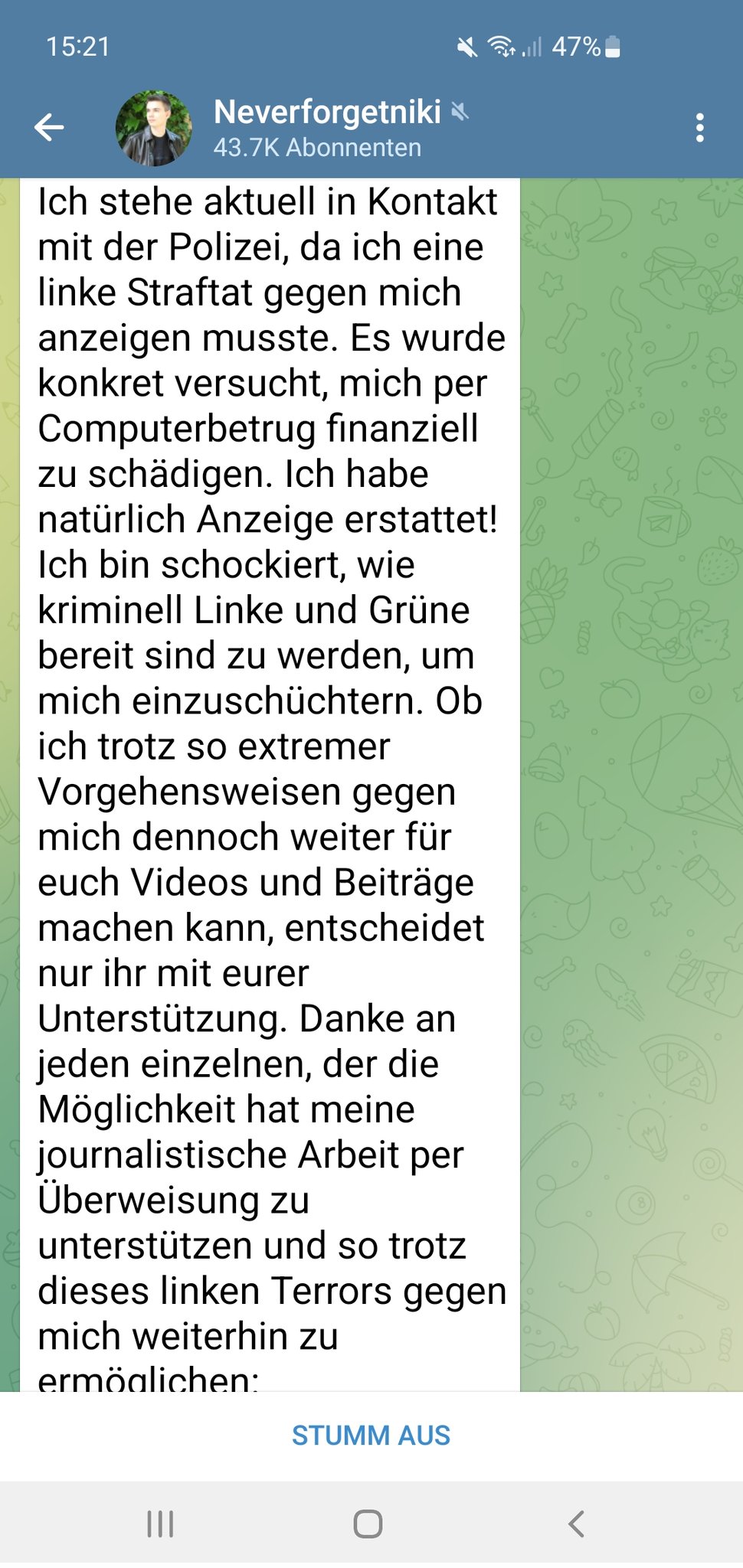 Wahrscheinlich hat der Depp, wie so viele andere, irgendeinen Phishinglink geklickt und ist ausgeplündert worden (falls etwas zu holen war, vielleicht ist sein Taschengeld weg). So'n Mist habe ich jede Woche auf dem Tisch. Jetzt sind die Grünen seine Dummheit Schuld und er bettelt.