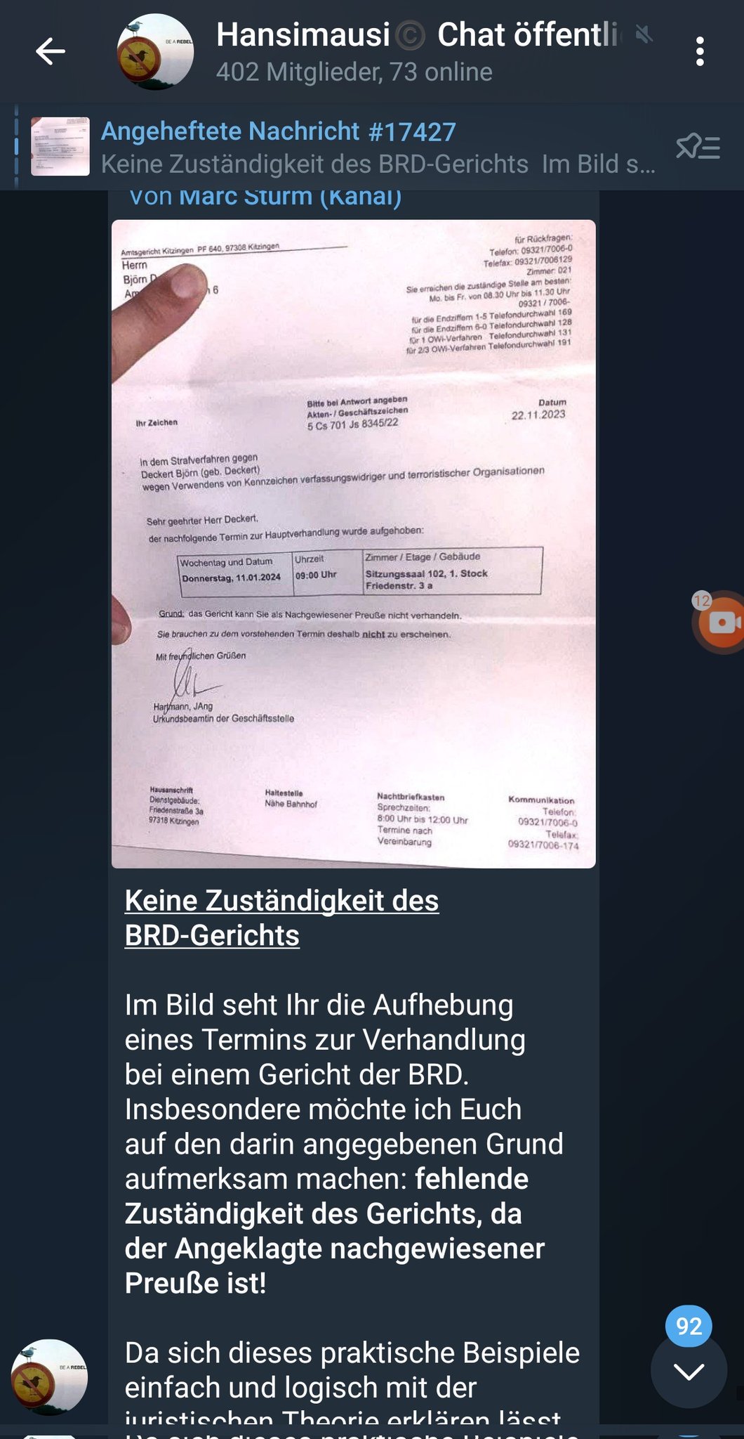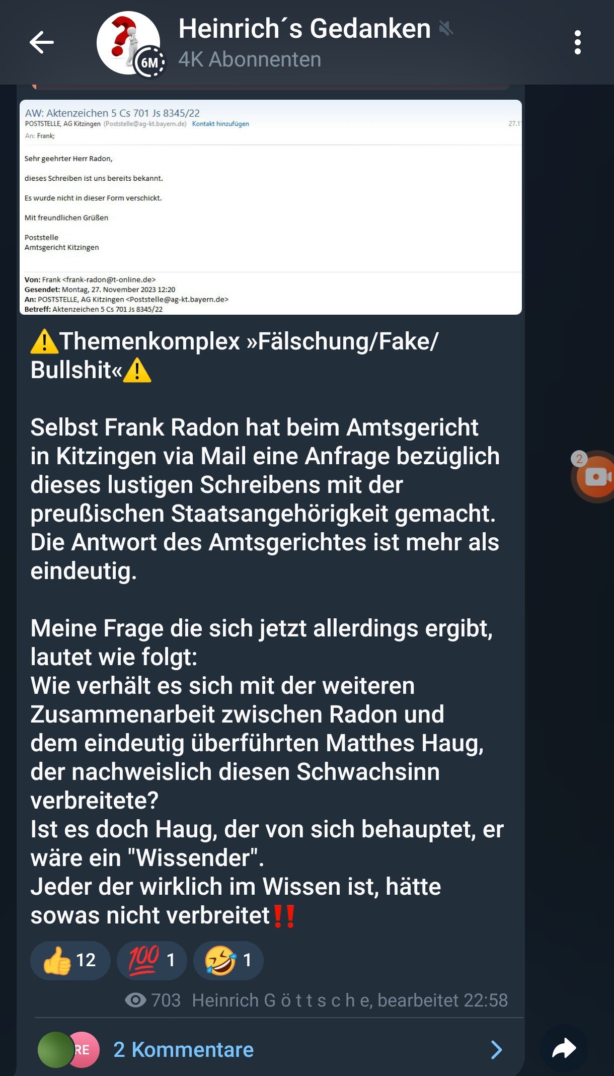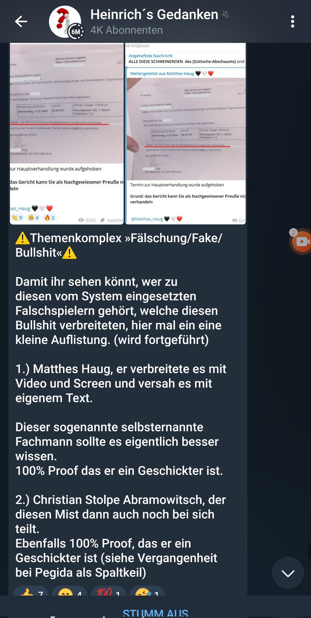 Dann wird - wie zu erwarten war - der in den letzten Tagen durch ganz Telegram gezerrte Fake vom "nachgewiesenen Preußen" durchgehechelt. Selbst Viehwagen-Jockel zweifelt den offensichtlichen Bullshit an.