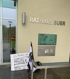 2. Staatsgewalt kann nur von außen kommen. Daher vor das Rathaus stellen und sein Erbe wahrnehmen. Man muss den von außen Helfenden zeigen, dass man Preuße und nicht mehr Deutscher ist.