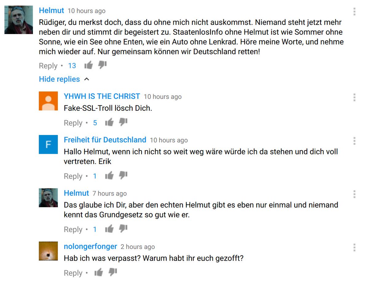 Rüdiger macht weiter mit seinem üblichen Sermon. Die EU ist kein Staat, Deutschland hat keine Staatsangehörigkeit, deshalb gibt es keine EU und alle können auch sofort austreten. Schwachsinn eben.  :facepalm: :facepalm:
