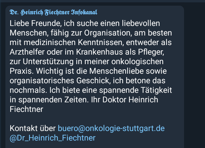 Eine onkologische Praxis? Na Halleluhjah, nach dem Unsinn den er zwischendurch abgesondert hat, würde ich da ja nicht mehr viel sinnvolles erwarten.