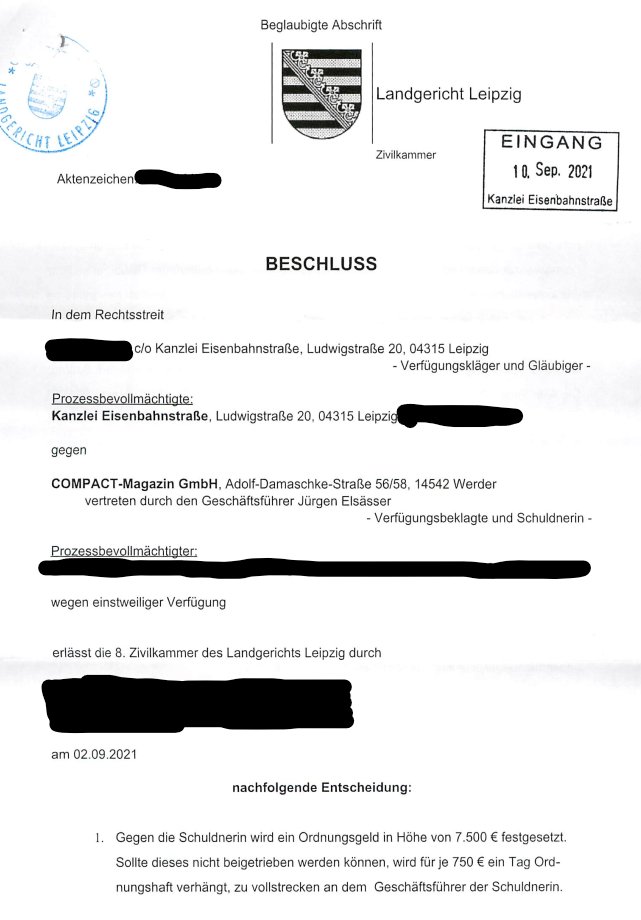 Jetzt wirds ernst. Elsässers Compact muss 7.500 € für Falschbehauptungen bezahlen, die sie trotz eines Urteils noch verbreitet haben. Und wenn das nicht gezahlt wird: #elsässerinsgulag