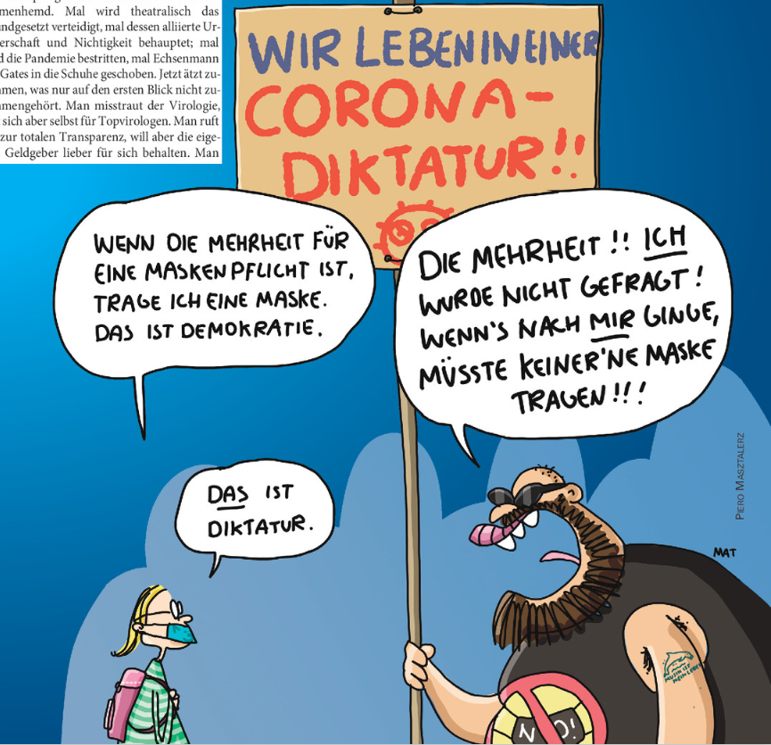 Ihr sagt jetzt: "Egal!" Michael Wendler sei doch nur ein winziger, dümmlicher Teil einer wachsenden Maschine des Wahnsinns. Aber das ist einfach nicht wahr. Dieser Wahnsinn will durch Corona-Leugnung, Verschwörungsmythen und haltlose Vorwürfe gegen alles hetzen, was irgendwie intellektuell wirkt. Er will das Gemeinwesen und die liberale Demokratie zersetzen. Michael Wendler ist bedeutsam und meine Nackenhaare stellen sich zu einer Gänsehaut der Scham auf, während ich das schreibe.