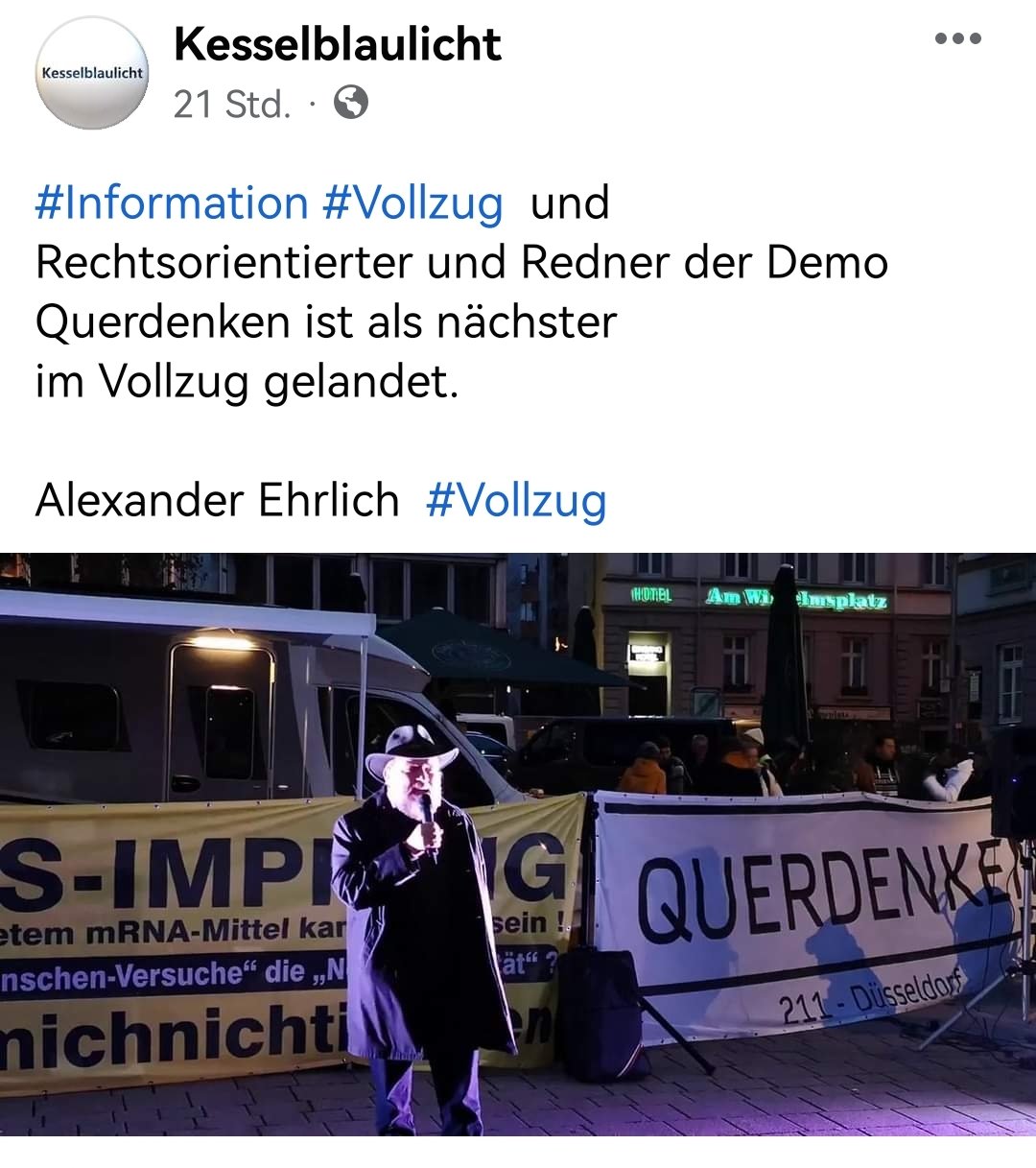 Hatte Ehrlich nicht vor ein paar Monaten einen Spendenaufruf getätigt? Erstmalig, weil irgendwelche Strafbefehle sich summierten und er von den finanziellen Mitteln der Bewegung abgeschnitten war? Oder trügt meine Erinnerung?