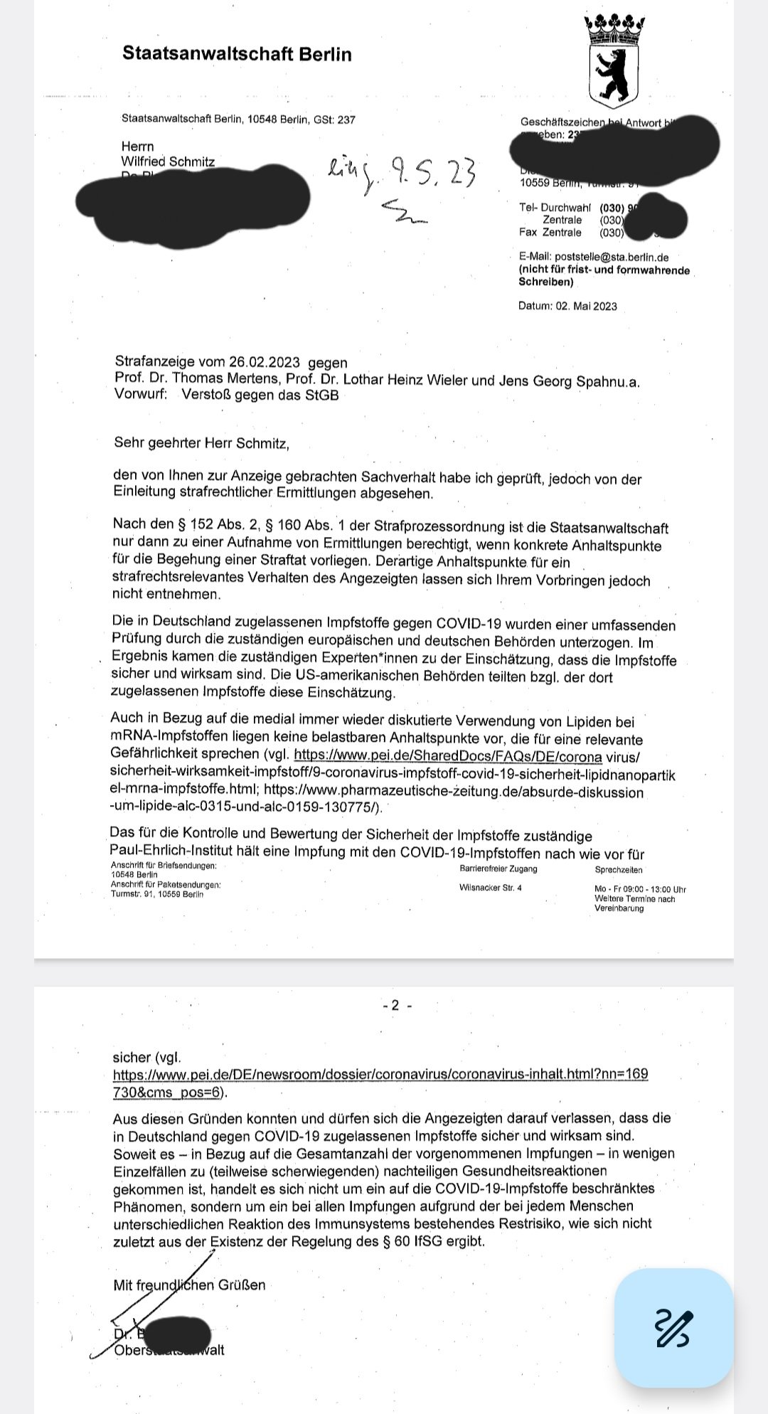 Sooo traurig nicht. Da hat der RA Schmitz eine ü100 Seiten lange Strafanzeige gg #STIKO & #RKI eingereicht & was macht die StA Berlin? Schickt ein 1 1/2-seitiges Schreiben, dass von der Einleitung strafrechtlicher Ermittlungen abgesehen wird 🤷🏻‍♀️🤣