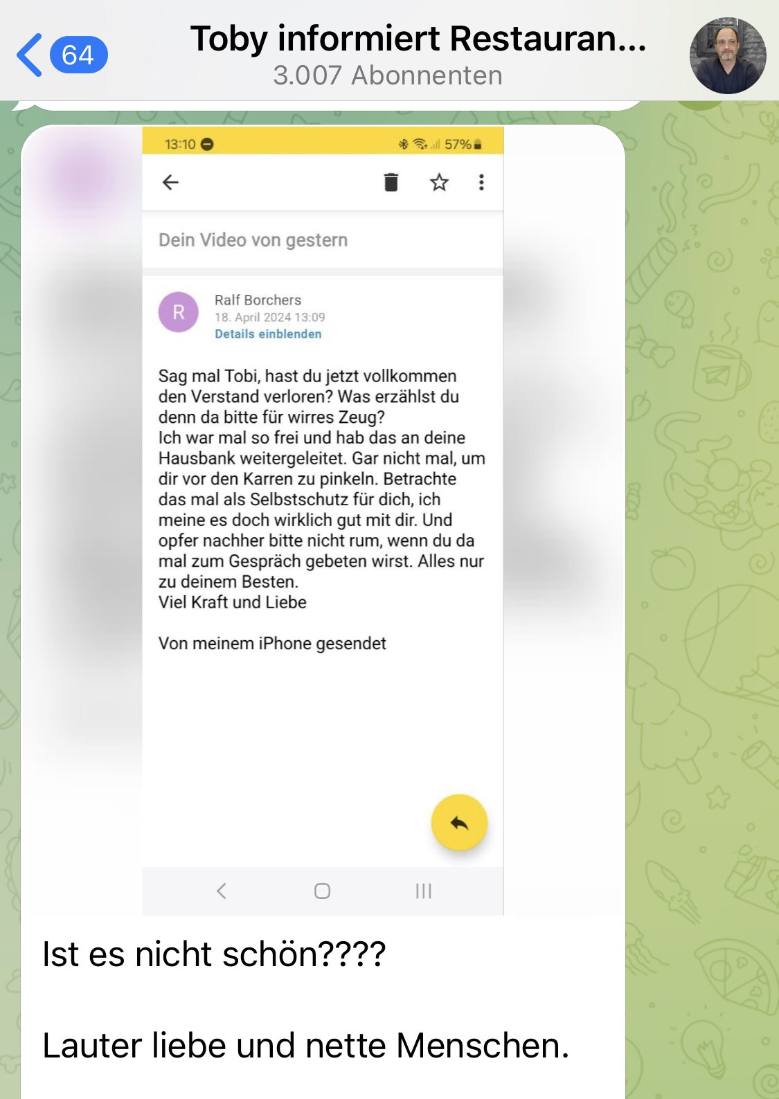 Wünsche euch noch einen schönen Abend und ganz ganz viel Kraft und Liebe. Grüße, euer Tobi.