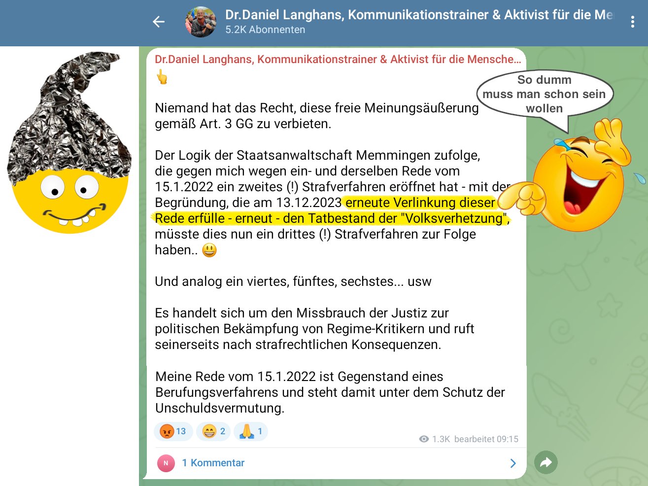 Dann können die Querdenker ja noch lange Mahnwachen für ihren Mehrtürer abhalten und Gelder sammeln.