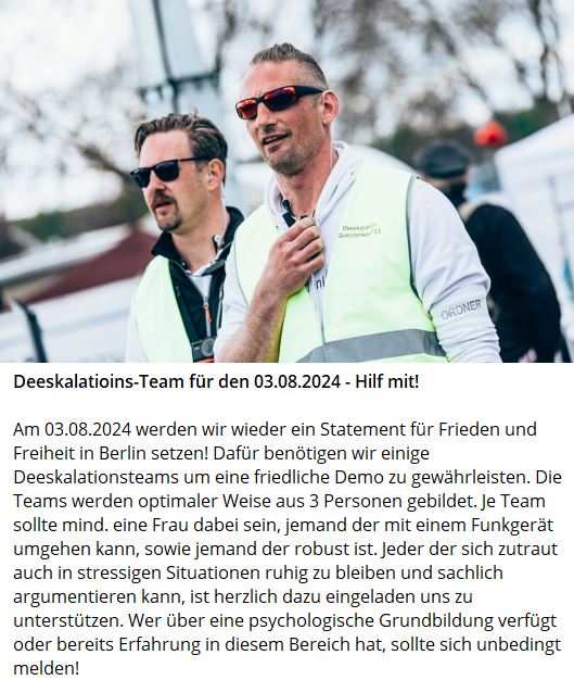Grandios quer gedacht. Was nützt mir eine Deeskalationstruppe, wenn ich einen Eskalator in der Gruppe habe? Ich kann es mir schon richtig gut vorstellen: Die kleine Alice versucht irgendwie mit dem gerade durchdrehenden Felix Alexander Kontakt aufzunehmen, was den robusten Bernd dazu veranlasst sich aufzuplustern, was den Felix Alexander endgültung zur Weißglut treibt, während Tino verzweifelt in das Funkgerät brüllt.