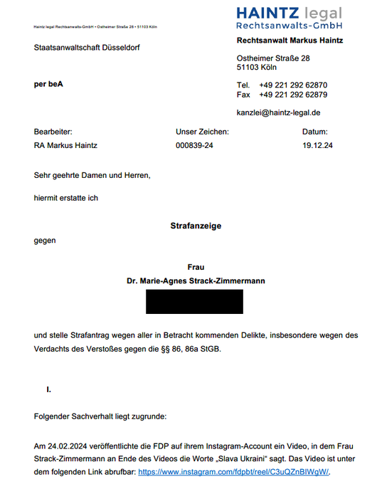 Auch wenn ich nur die erste Seite seines Schriftsatzes kenne, wage ich doch die Vermutung, dass die StA Düsseldorf hier keine Anklage erheben wird. Dies dürfte nur einen kleinen Bruchteil der Bevölkerung veranlassen, Haintzi als Held zu feiern und ihn mit Spenden zu überschütten. Nach meiner Meinung ist aber schon der erste gespendete Euro sinnlos ausgegebenes Geld.
