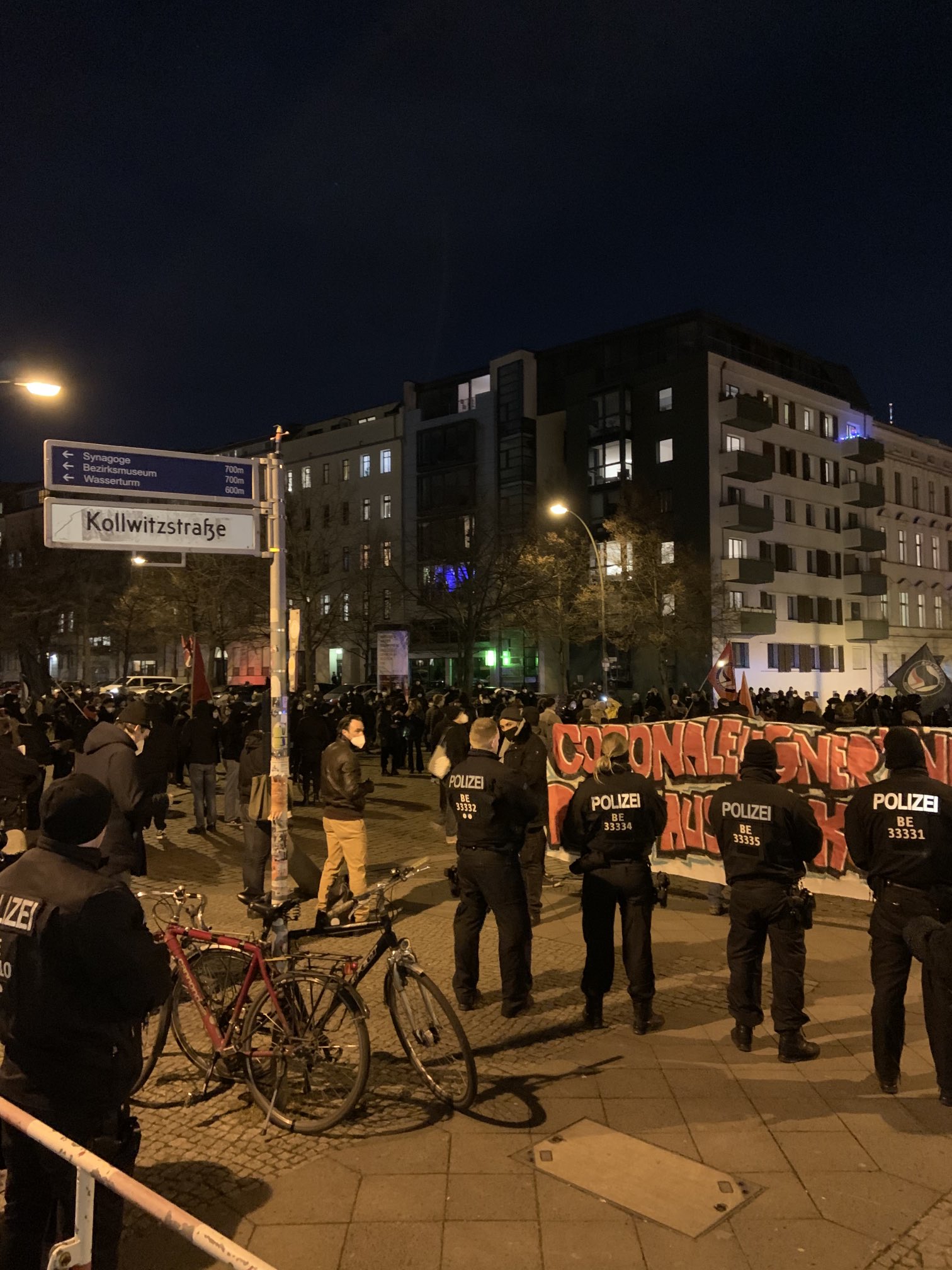 Cops sind abgezogen min. 10 Querdenker stehen jetzt relativ verloren schönhauser/saarbrücker unter ihnen captain future