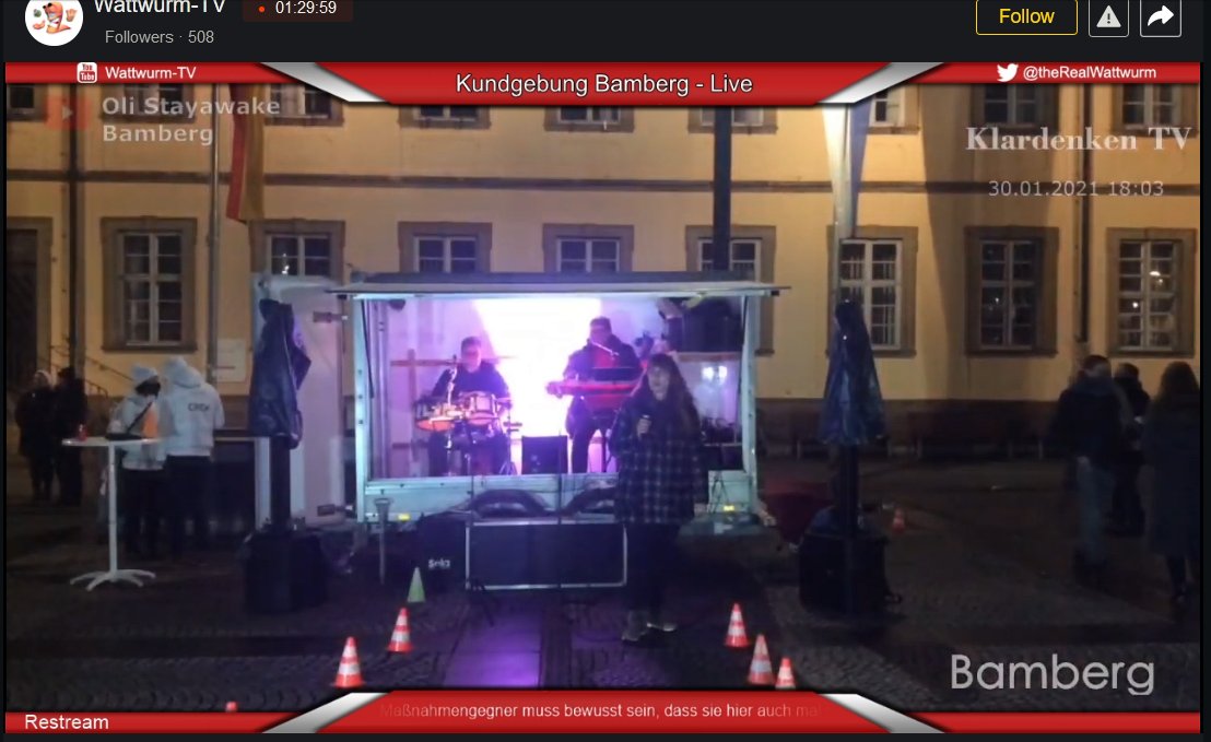 Der Lockdown findet nun auch im #scotchundsofa statt. Um 19:30 Uhr sollte die Gründung der verschwörungideologischen Partei „Team Freiheit“ beginnen. Bislang sind alle Lichter aus. #b2801