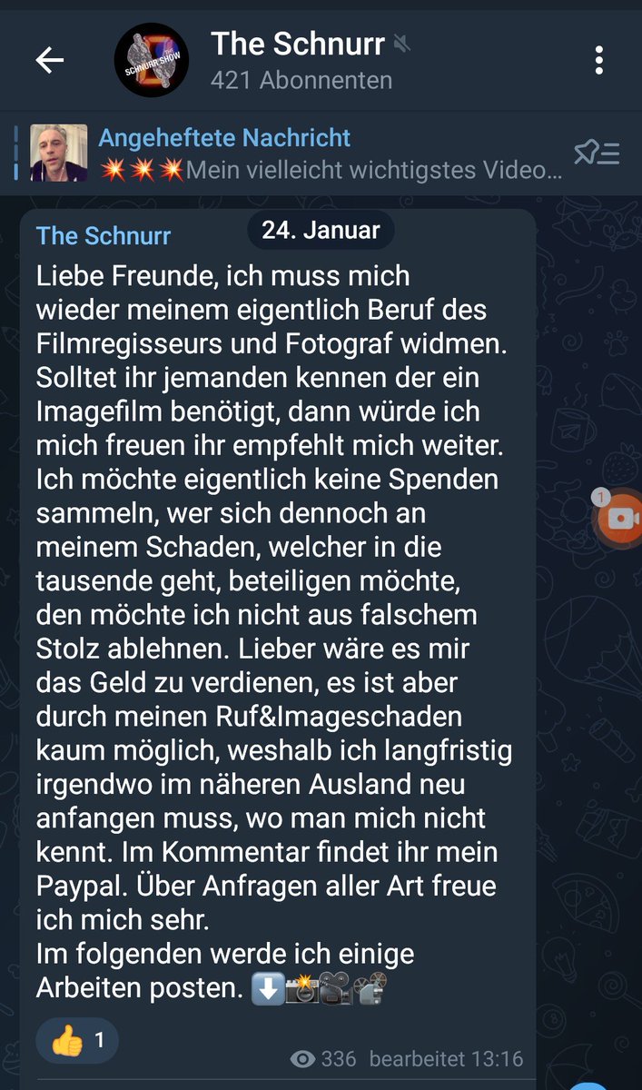 Phillipp Schnurr, das ist der Veranstalter von der "gut" besuchten Versammlung im Mauerpark, bei der Stiefelknecht und Prollein Braun rumgeschwurbelt haben, ist mal wieder psychisch etwas derangiert und droht der Polizei mit dem Mossad.