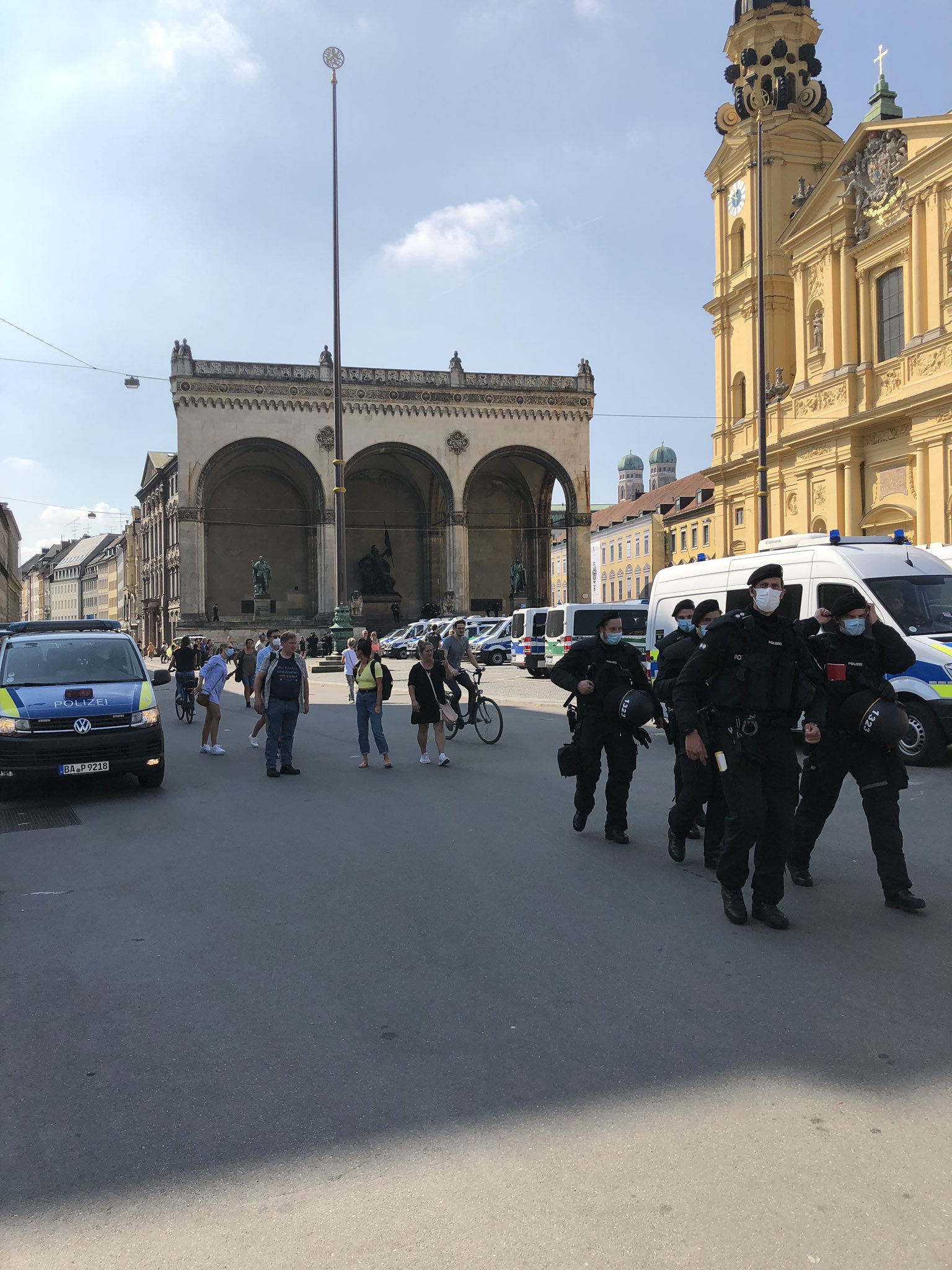 Update vom 12. September 2020, 13.04 Uhr: Die Polizei hat den Bereich um den Odeonsplatz abgesperrt und lässt niemanden mehr rein. Die Sperren sind am Hofgarten und an der Staatskanzlei aufgebaut.