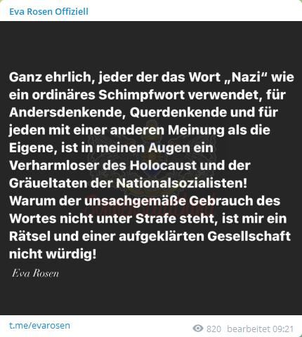 Aber wenn in diesen dämlichen Querdeppendemos Rechtsextreme und Nazis mitlaufen und man diese auch als solche bezeichnet, dann ist das