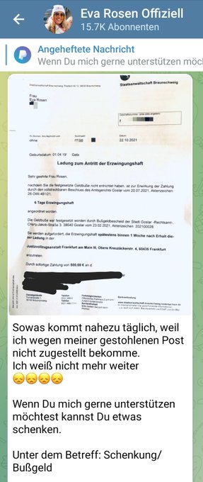 Und schon werden die nächsten 500 EUR gebraucht, sonst gibt es 6 Tage Knast.