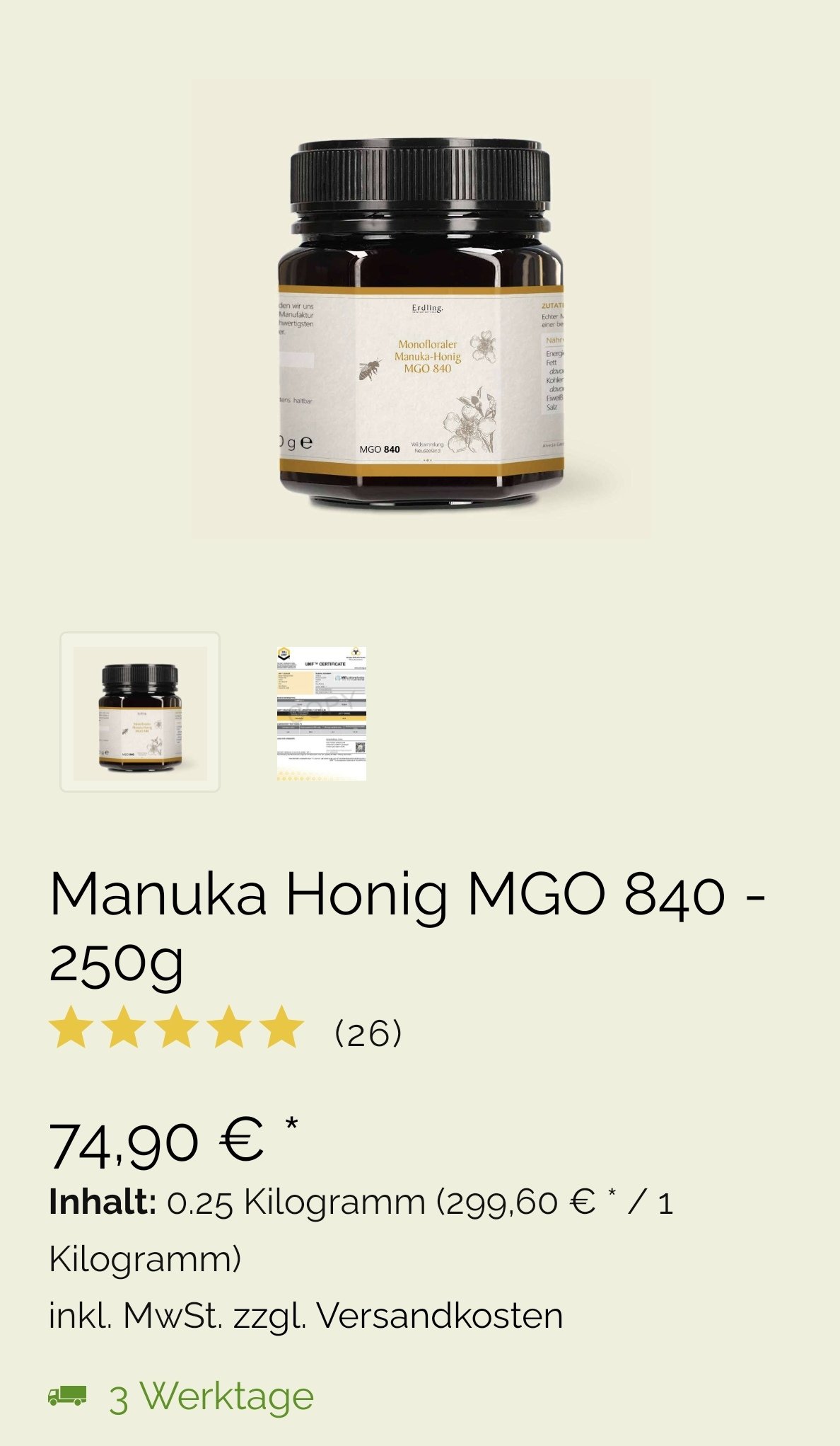 Am Ende bleibt hier nur eines übrig: Übertrieben teuer Honig dessen besondere Heilwirkung auch jeder Honig für 10€ hat (wissenschaftlich nachgewiesen).