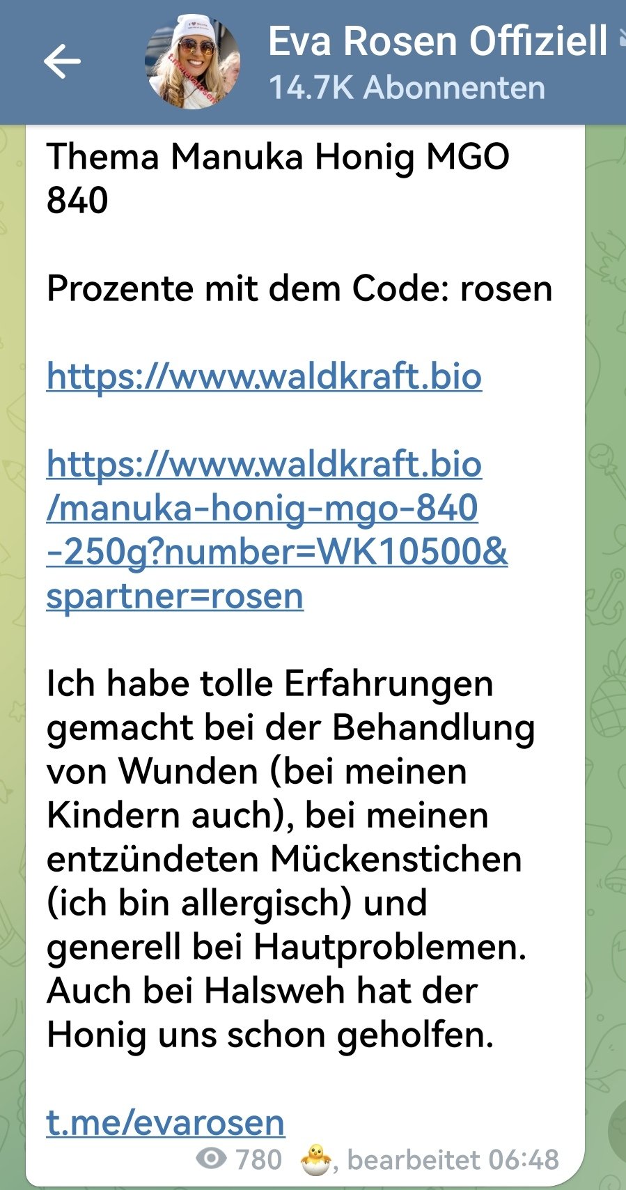 Das MGO in Manuka-Honig hat tatsächlich eine überschaubare antibakterielle Wirkung gegen Staphylokokken und Kolibakterien. Der Rest ist der übliche Schmuh oder trifft auf die meisten Honige zu. Zur von Frau Rosen gepriesenen Wundbehandlung (bei Kindern!!!) sollte man wohlweislich nur sterilen, sogenannt medizinischen Honig verwenden - wobei mir kein Fall einfiele wo nicht auch ein Pflaster reichen würde.