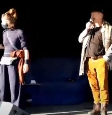 Sein Leibwächterin/Krankenschwester/Gehhilfe oder was die darstellen soll (war Samstag auch schon mit in Amberg) war auch wieder dabei.