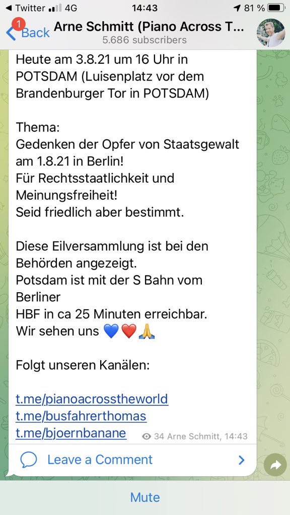 https://dlive.tv/p/etvideocontent+dggEjHG7gUnd ja, Potsdam kann bös enden. Ich erinnere mich noch an den zerkloppten Bus von Bärgida, als die zum ersten Pogida gefahren sind. Das war auch meine erste Demo, wo ich fliegende Steine und Flaschen aus viel zu großer Nähe erleben durfte. Am Ende hab ich von einem Polizisten sein Schild vor den Kopf bekommen und von einem Linken aufs Maul, weil der mich für einen Nazi gehalten hat.