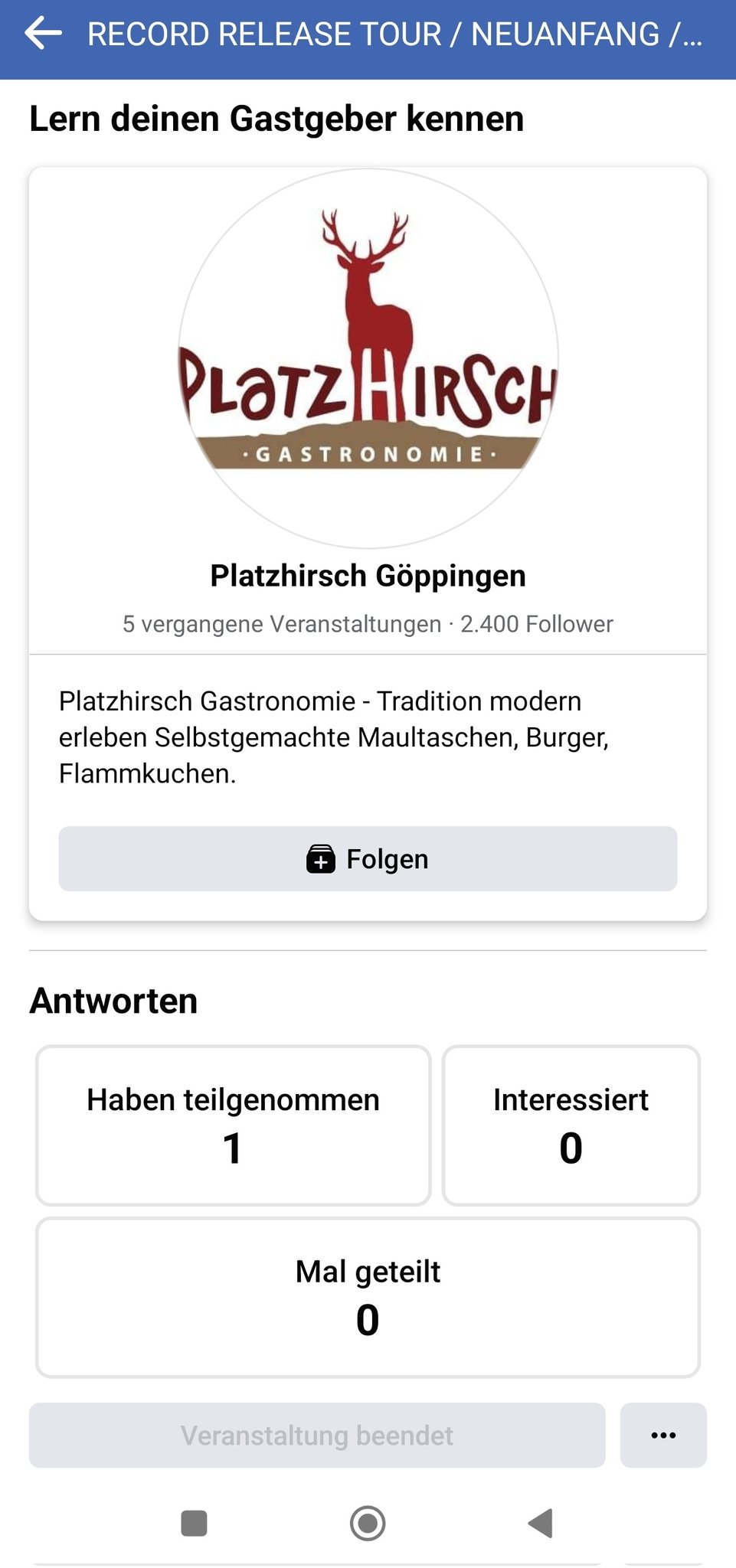 Dieser Raum sieht aber eher aus wie ein übergroßes Wohnzimmer (kleine Gaststätte halt). Riesencomebacktour, demnächst dann in den großen Stadien der Republik.