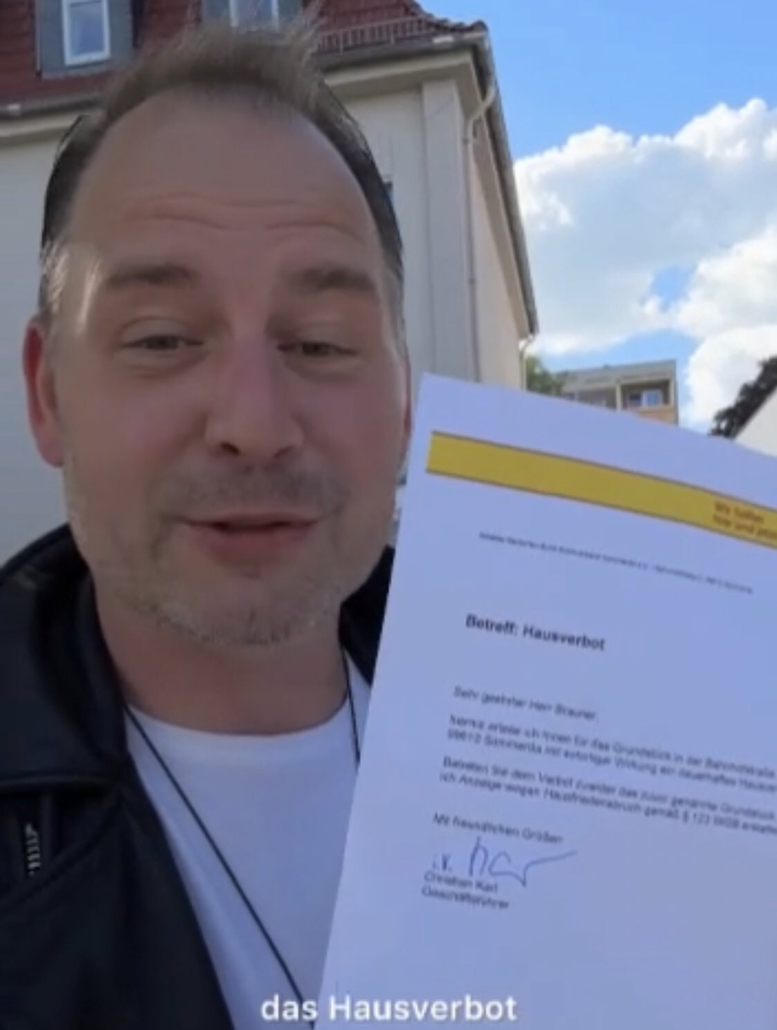 höchstpersönlich überreicht bekommen, das Hausverbot.