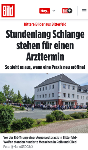 Asterix bekomme ich gerade mal wieder einen leichten Anfall von Paranoia: Wie üblich gibt er als Quelle nur einen ausgeschnittenen Screenshot an. In diesem Falle über einen BLÖD-Bericht über die Eröffnung einer Augenarztpraxis in Bitterfeld, bei der es dann zu langen Wartezeiten kam.