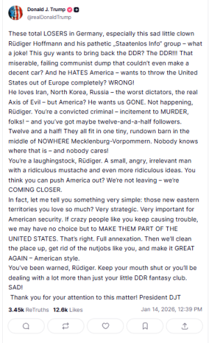 Die Deppen sind im Prinzip erfolgreich isoliert, keine nennenswerte Reichweite, keine nennenswerte Unterstützung in der Breite. Der Rüde lebte immer vom Geld anderer Personen, wobei er das Geld entsprechend schnell erfolglos verbrannte. Wir erinnern uns der Bühne in Berlin, auch gesponsert und was ist rausgekommen: Der Sturm auf den Reichstag. Selbst hier war der Rüde erfolglos, weil an einem anderen Ort. Andere haben mehr bewirkt als er.